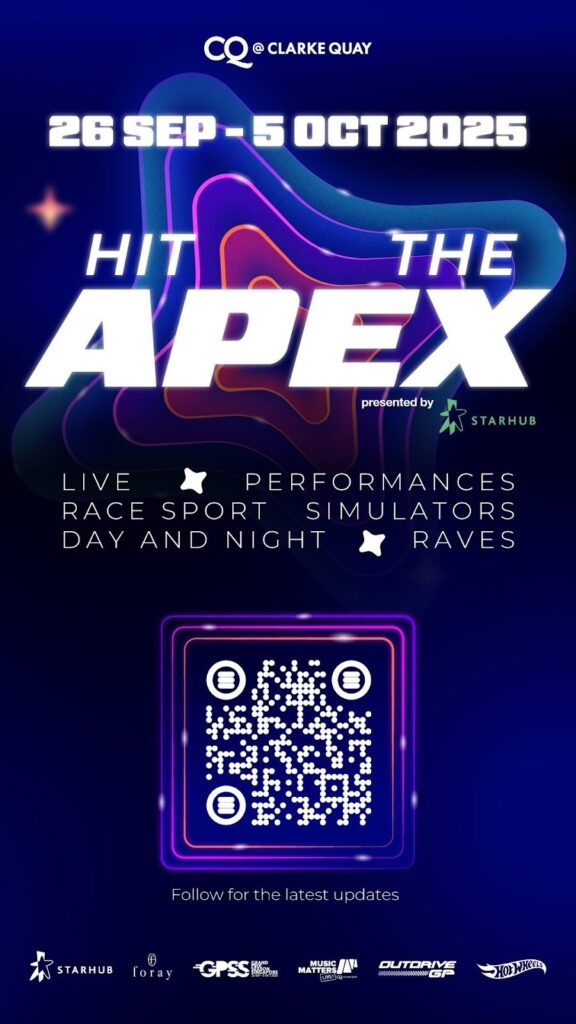 Hit the Apex is a F1 event that features its own race car simulators, free photobooths with F1-themed photo strips, party games and more.