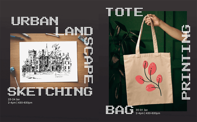 Different workshops are up for play on 23-24 Jan and 30-31 Jan. From pottery classes to selfie sketching, you can enjoy the exhibitions and even keep your craft as a small memento.