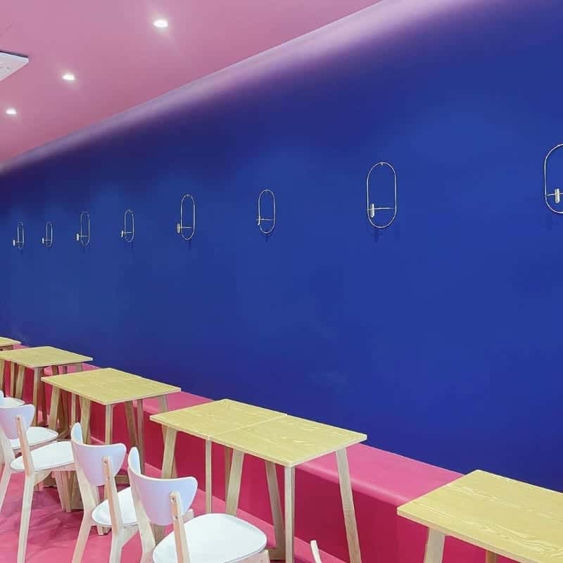 What makes Three Point Two stand out from the rest is that one-of-a-kind colour palette, vibrantly decked out in bubble gum pink and royal blue. Pretty much a perfect spot for those who want an OOTD for the ‘gram.
