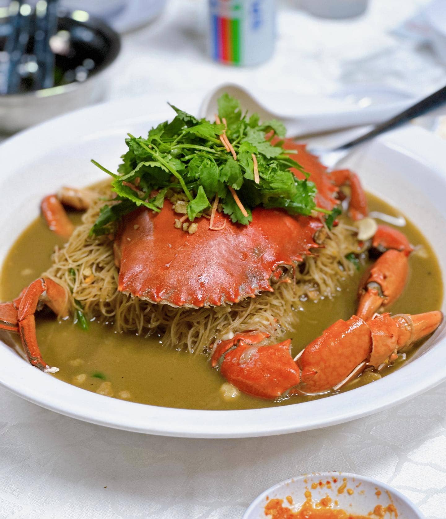 Get the highly raved about signature Long Ji Bee Hoon Crab (S$159) with fresh crab and noodles packed with umami flavours.