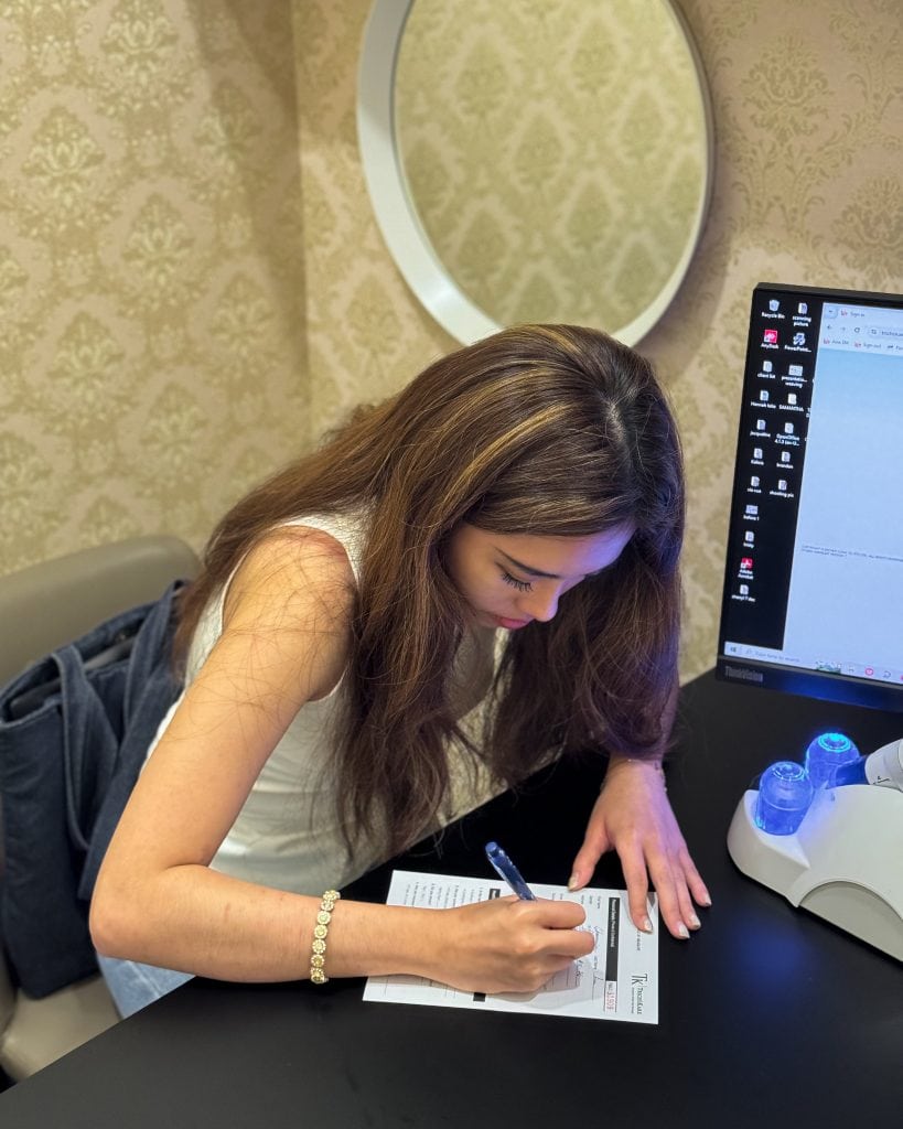 Lastly, she got to wear a futuristic-looking helmet for the final step, Hair Bang, which is essentially a laser light infrared technology that maintains the scalp’s pH balance, detoxifies, and promotes overall hair and scalp health.