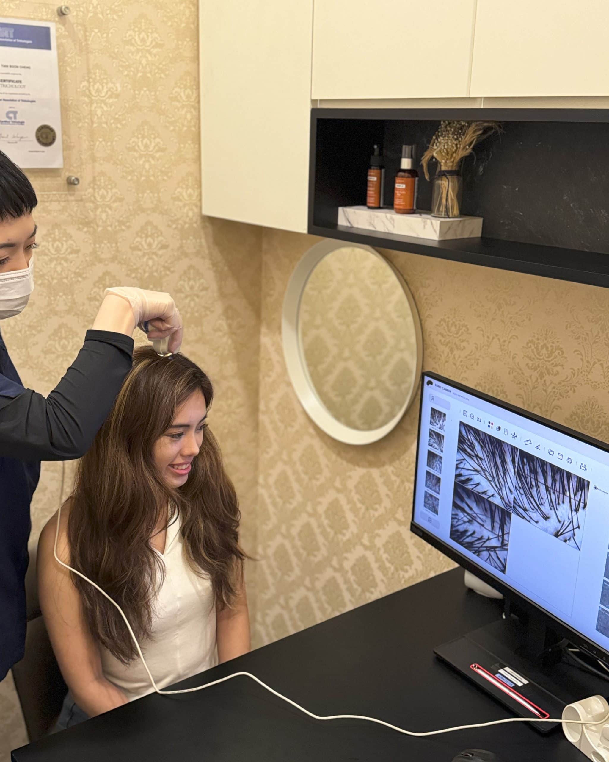 Every treatment starts with a pre-treatment hair and scalp scan analysis that uses Tricho-scan, which magnifies the scalp by up to 200 times.