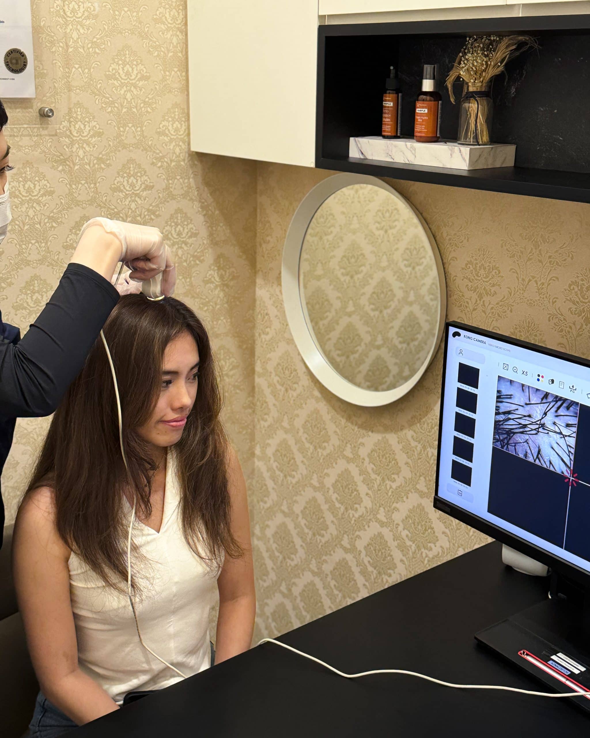 She then got her scalp scanned, where it was revealed that she actually had an oily scalp. Despite her hair looking voluminous from the outside (with the help of hair appliances), she also had thinning hair issues at the crown of her hair with no new baby hair growth. Oh dear.