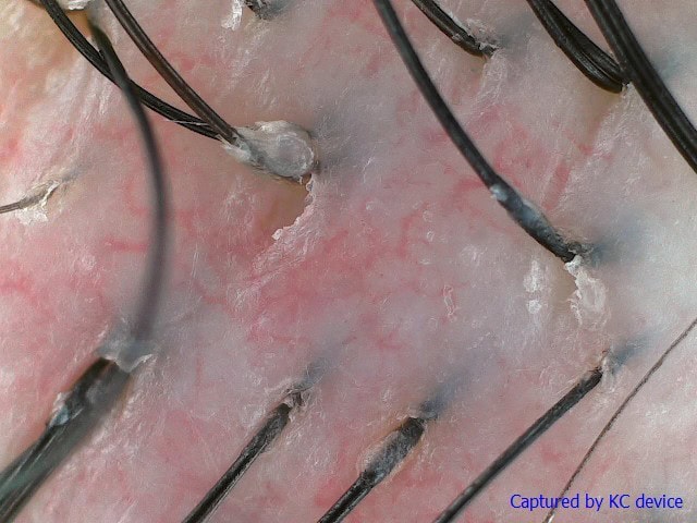 With the power of the magnified scalp scan, the results are as clear as day. Gone are her oil-clogged pores and redness and itchiness from her scalp inflammation, clearly showing that the nutrients from the treatment have been absorbed well into her scalp.