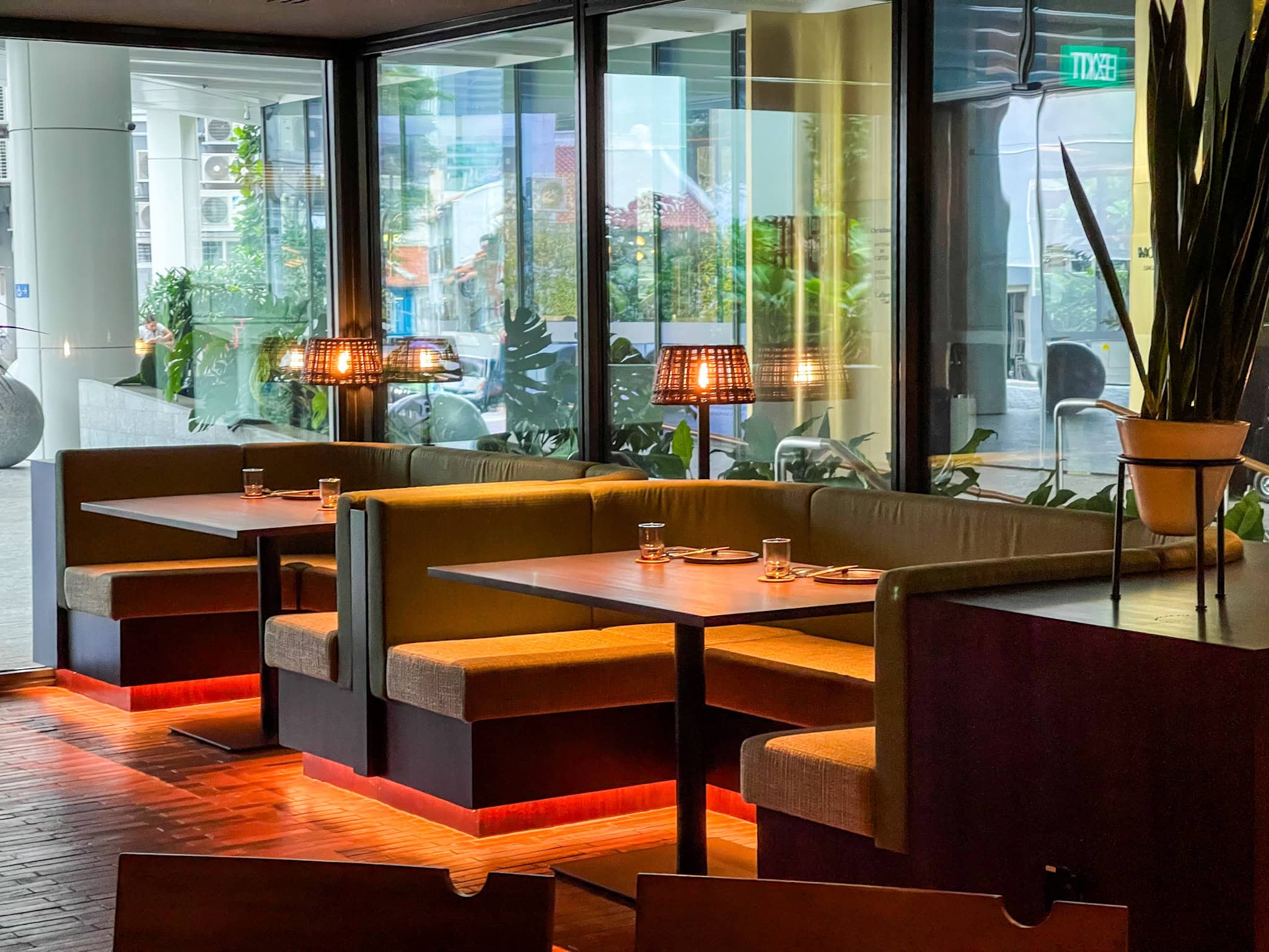 The entire space is decked in earth tones with lots of wood elements and rattan weaving, along with plush seats scattered around. Not gonna lie, there was a certain charm to the place with the warm lights creating an air of romance — perfect for a romantic date.