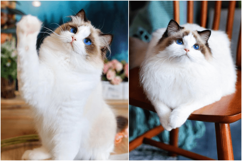 Three fun facts to know about ragdoll cats – all purebred ragdoll cats have blue eyes, they are one of the largest domesticated breeds of cats, and they have dog-like personalities – being fiercely loyal to their families and just as playful too (they can even play fetch!).