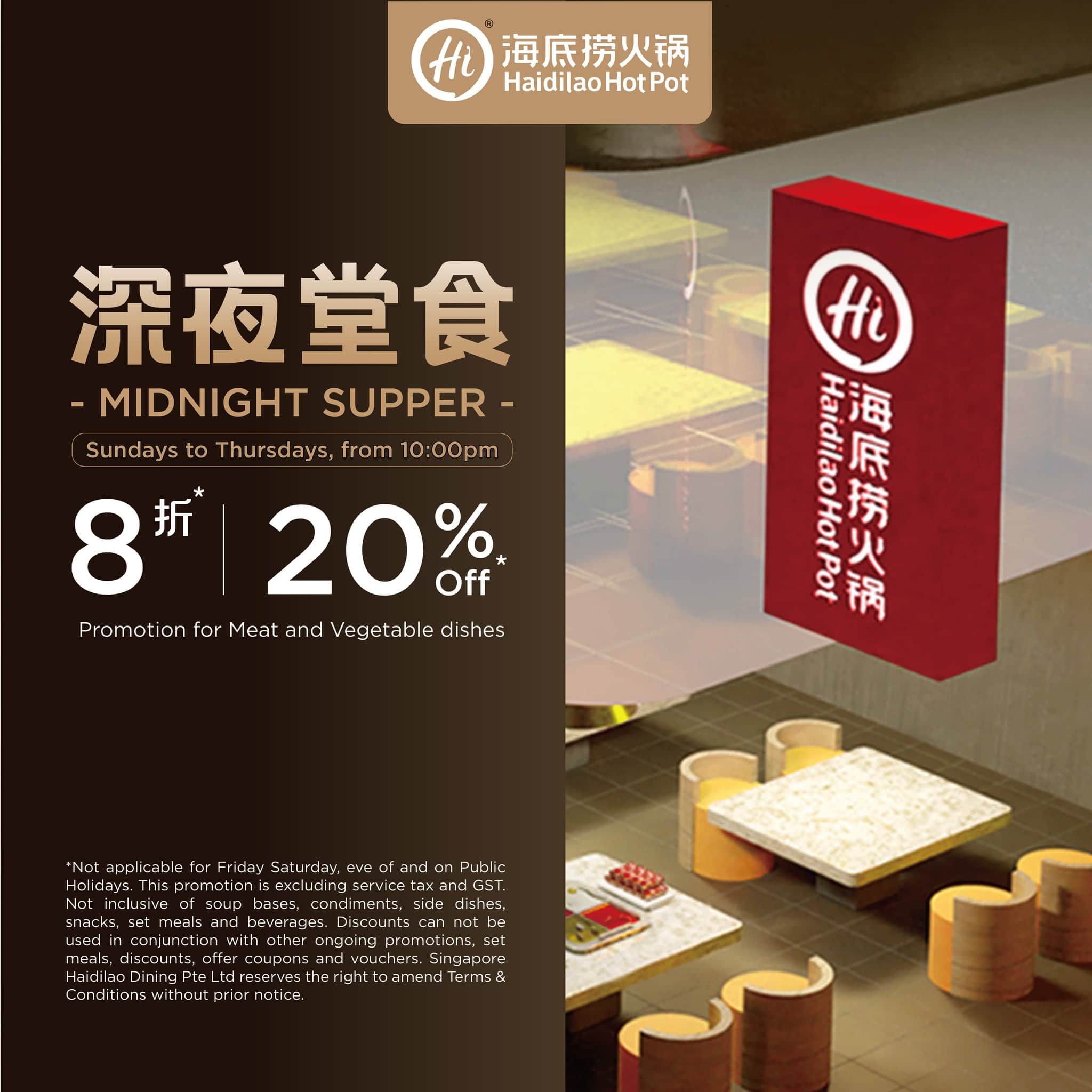 This 20% discount on meat and vegetable dishes during late-night suppers is well-known amongst Haidilao regulars, but newer customers may not have heard of it.