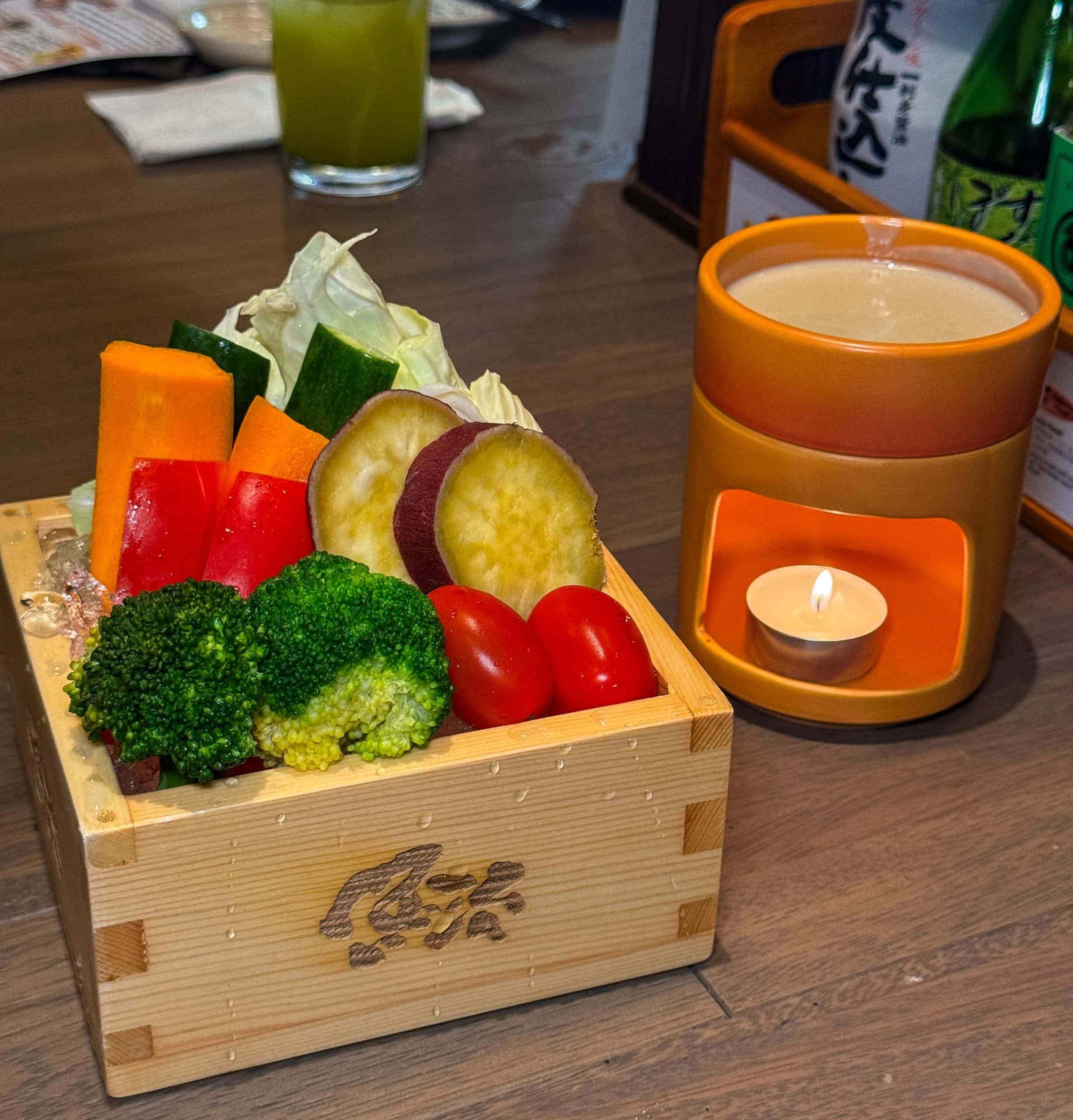 All guests will be served Bagna Cauda (S$3 per diner), a dish of raw seasonal vegetables, as a form of otoshi, a small dish traditionally served before the meal, but you can let the staff know if you’d prefer not to receive it.