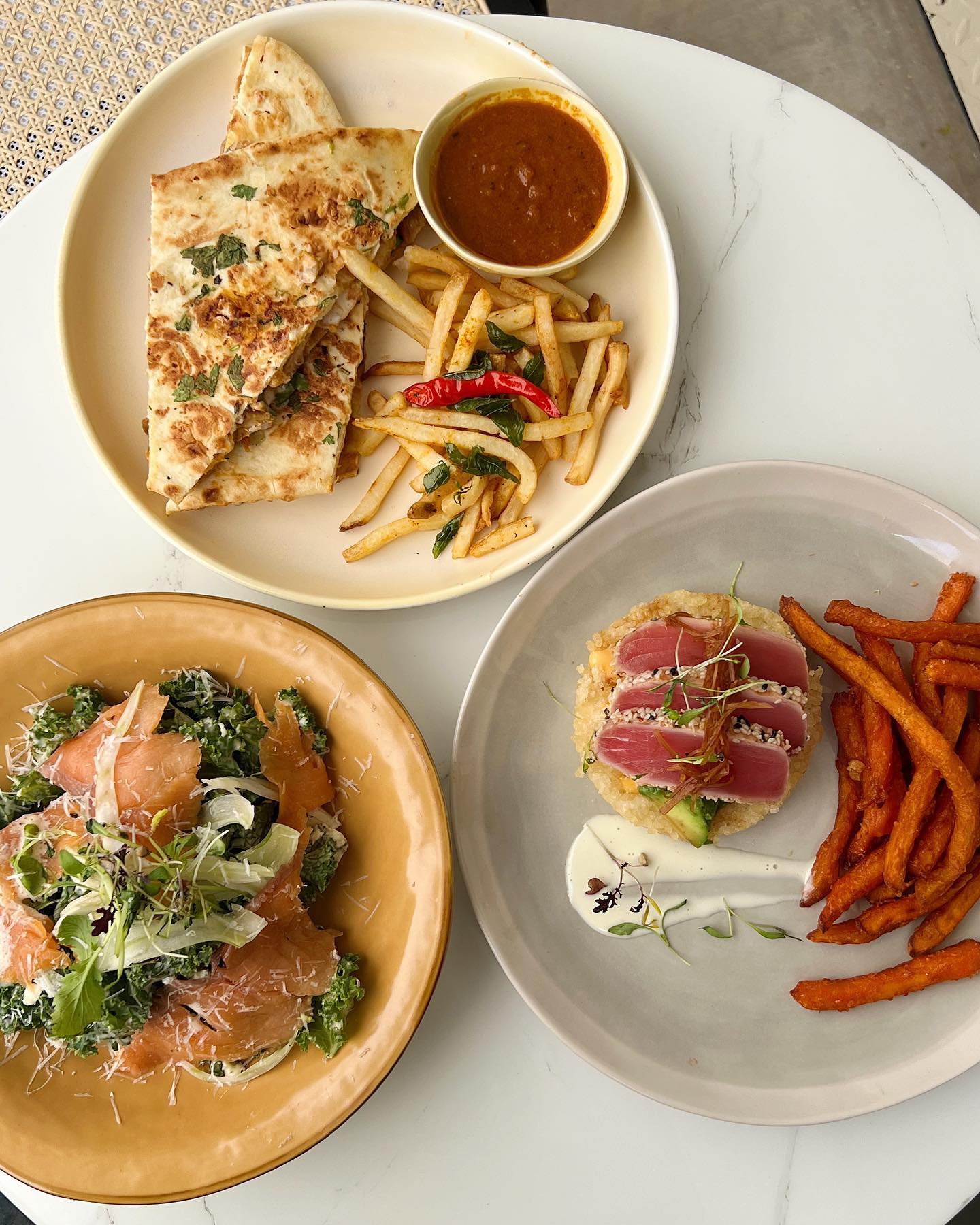 Afterwards, spend some time with a cuppa (from S$4 for an Espresso) or tuck into hearty brunch classics with an Asian-inspired flair, like the Kimchi Fried Chicken Burger (S$24), Seared Tuna Som Tam (S$20), and Butter Chicken Na’anwich (S$24).
