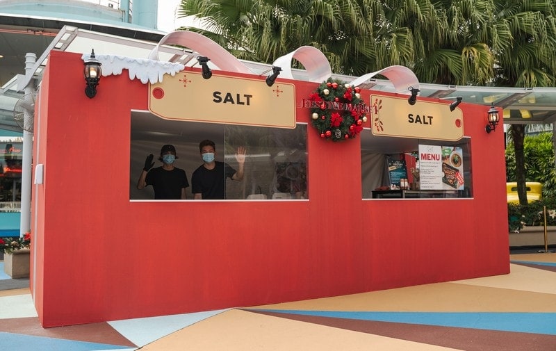 If Restaurant Salt sounds familiar, that’s because they’ve been on an innovation roll — first launching their work from home delivery kits, then hosting local cuisine pop ups such as Hai Kee Chicken Rice and Old Hock Kee Bak Kut Teh. Now, the cloud kitchen has landed at the Christmas market, and is serving their signature garlic butter cream cheese buns with a twist.