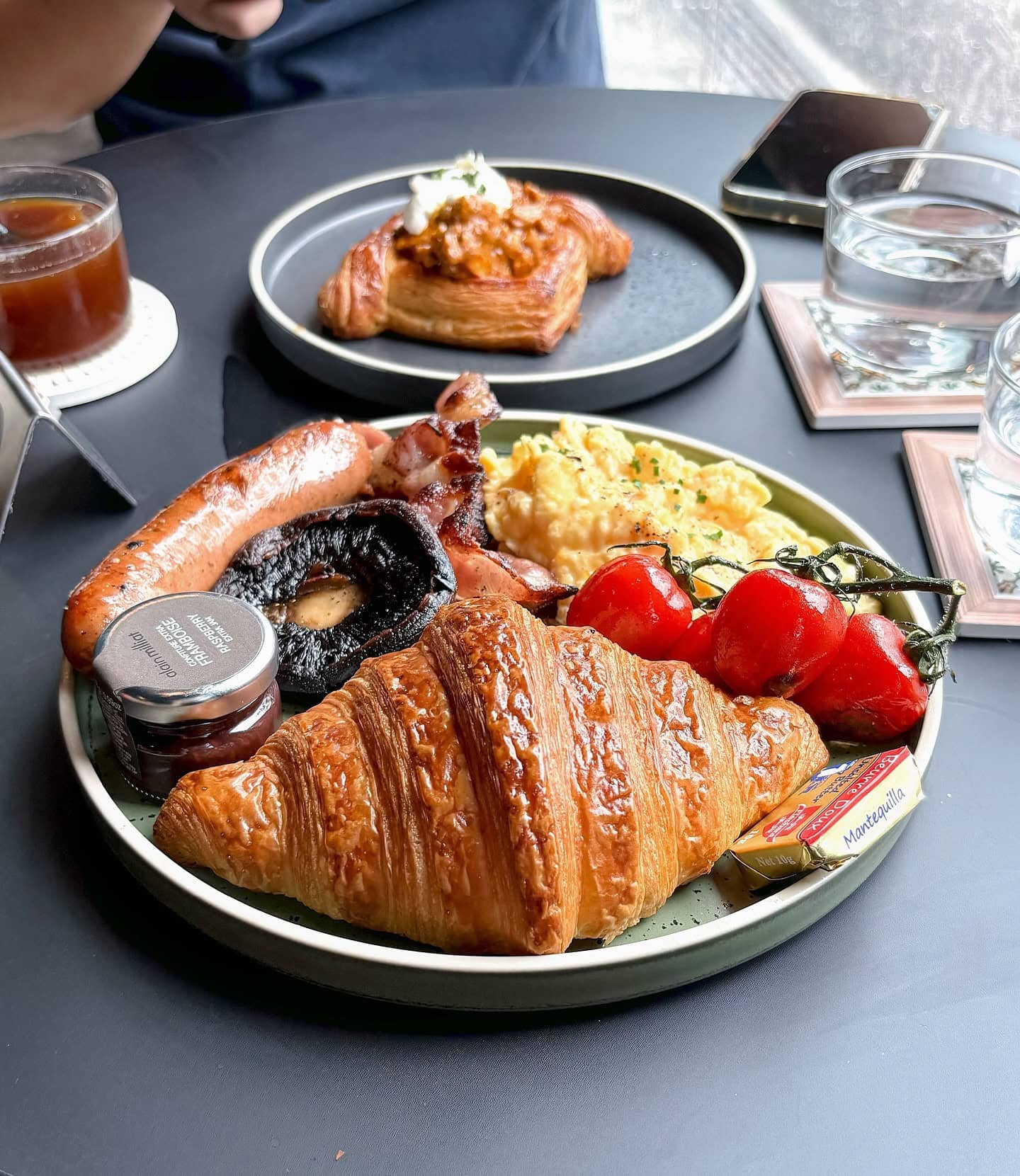 It comprises smoked kurobuta sausage, streaky bacon, portobello mushroom, vine tomatoes, scrambled eggs, and a croissant with butter and raspberry jam — definitely a filling dish that can be shared between two small eaters.