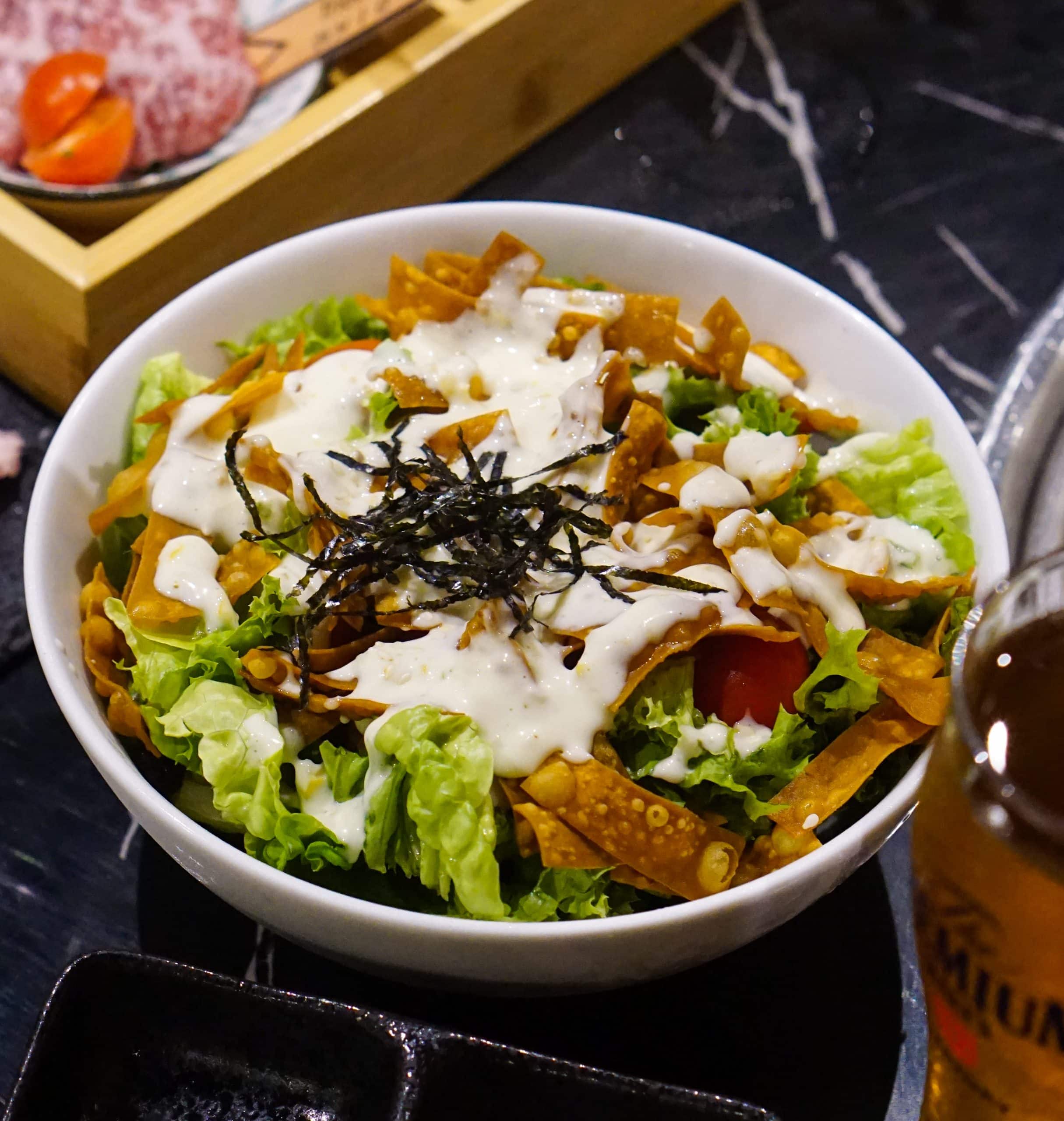 Serving as a palate cleanser in between bites of buttery wagyu is the Wakushin Salad (U.P. S$15.90), consisting of fresh greens, cherry tomatoes, salmon cubes, and crackers drizzled (a little too liberally, I might add) with creamy and tangy yuzu dressing.