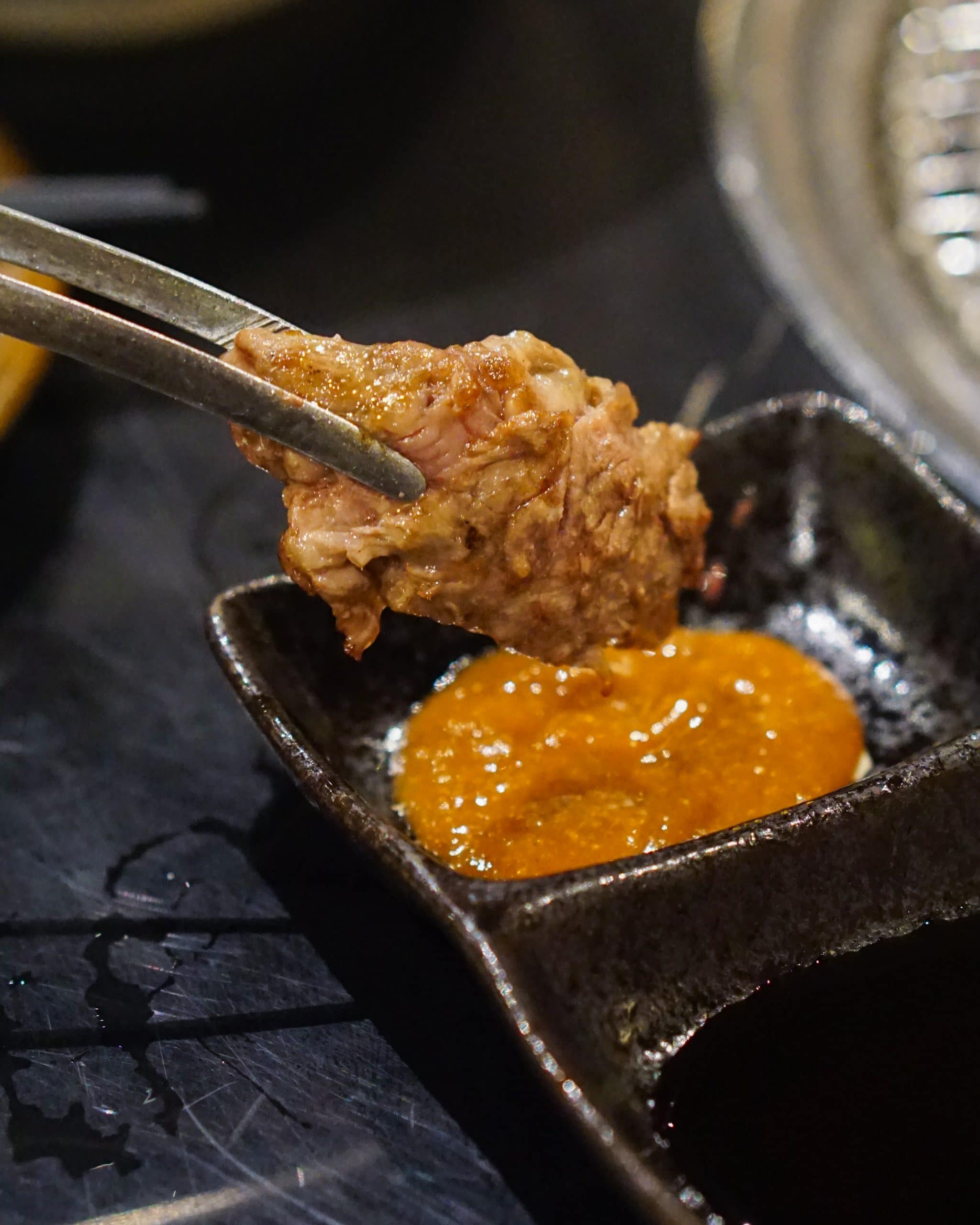 Each table is equipped with two sauces — a buttery miso and a sweet-savoury yakiniku — but plain ol’ salt is available upon request.