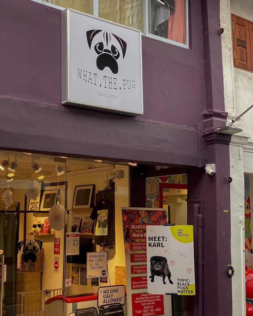 Conveniently located along the shophouses at Haji Lane, the cafe is decked in a deep shade of purple along with its iconic pug posters displayed at the front — it’d definitely be hard to miss such a striking entrance.