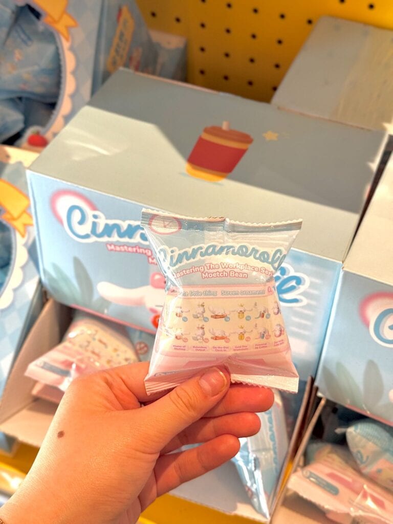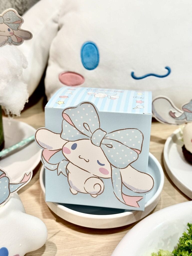 The themed cafe is decked in Cinnamoroll’s signature blue and white hues, filled with the character’s plushies, and merchandise, like the Konbini Building Blocks, and mini ornaments.