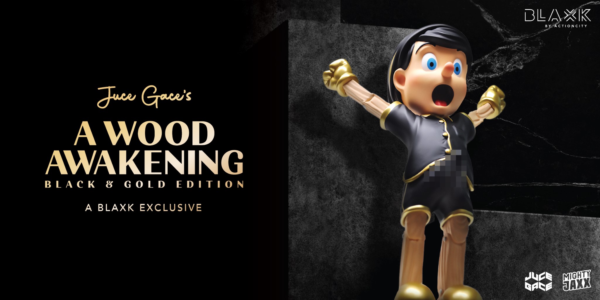 Some of Juce’s masterpieces from his popular collections like A Skulltoon Awakening will also be on full display around the exhibition so make sure to take a good, long and hard look at them. There will also be a special event-exlcusive A wood Awakening character in the iconic pose on display at too. Is he a grower or a shower? We’ll leave you to decide.