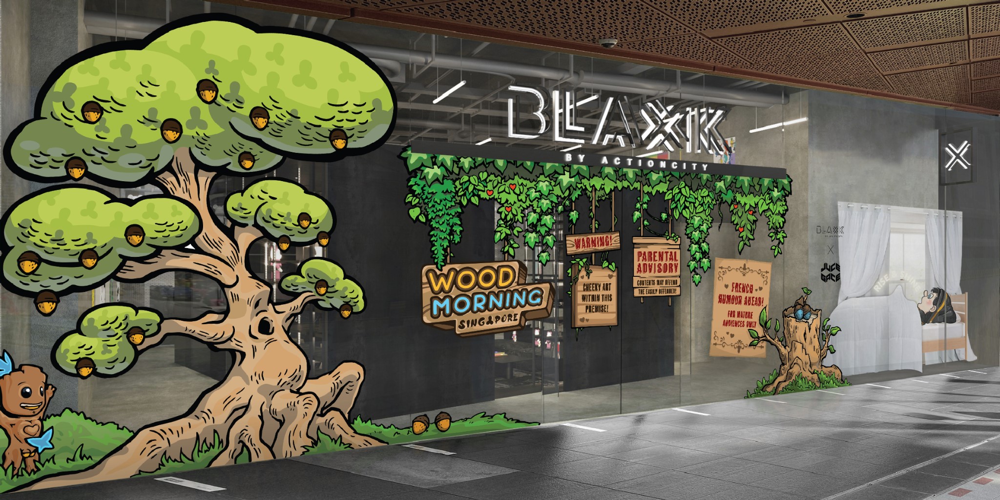 The cheeky exhibition is located at the ground floor of Funan and it is decorated with lots of greenery and large cartoon trees. There’s also a parental advisory sign placed at the entrance, so maybe don’t bring your kids along for this one — that’s a dick move and we don’t need this to come up in therapy when they’re older, you know?