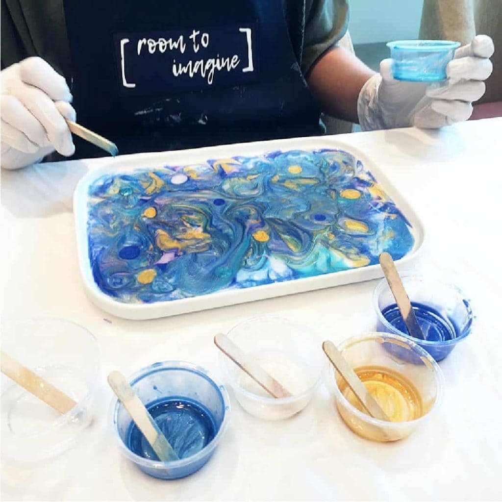 For purveyors of paints and abstract artwork, acrylic pour art should be no foreign concept. You can look forward to designing pieces like a crystal cheeseboard and even a fully functional clock. Alternatives like acrylic pour coasters and dishes workshops are also available.