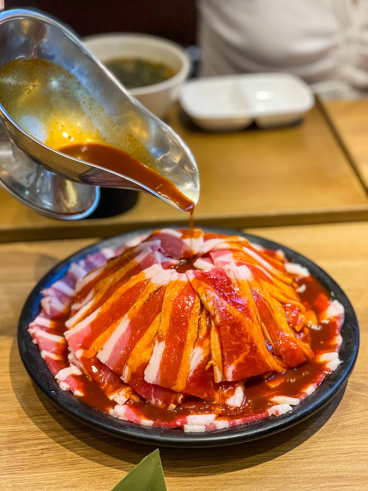 As its name suggests, this set is perfect for big eaters, or maybe even a group of small eaters. The set comes with a karubi volcano platter with a heaping pile of meat weighing 1kg, alongside double portions of seaweed soup, 500g of rice, and an Aladdin pot of spicy Korean sauce.