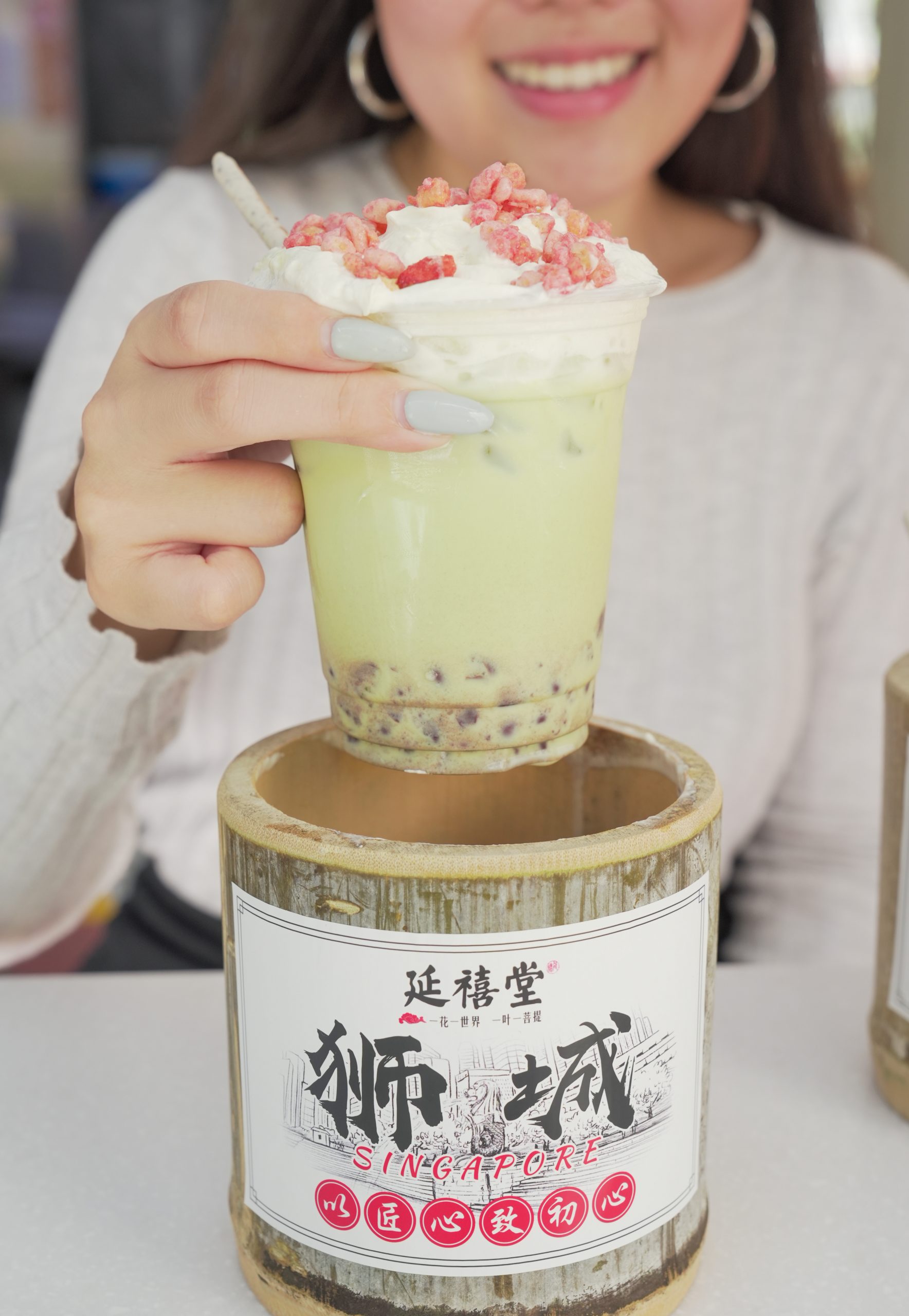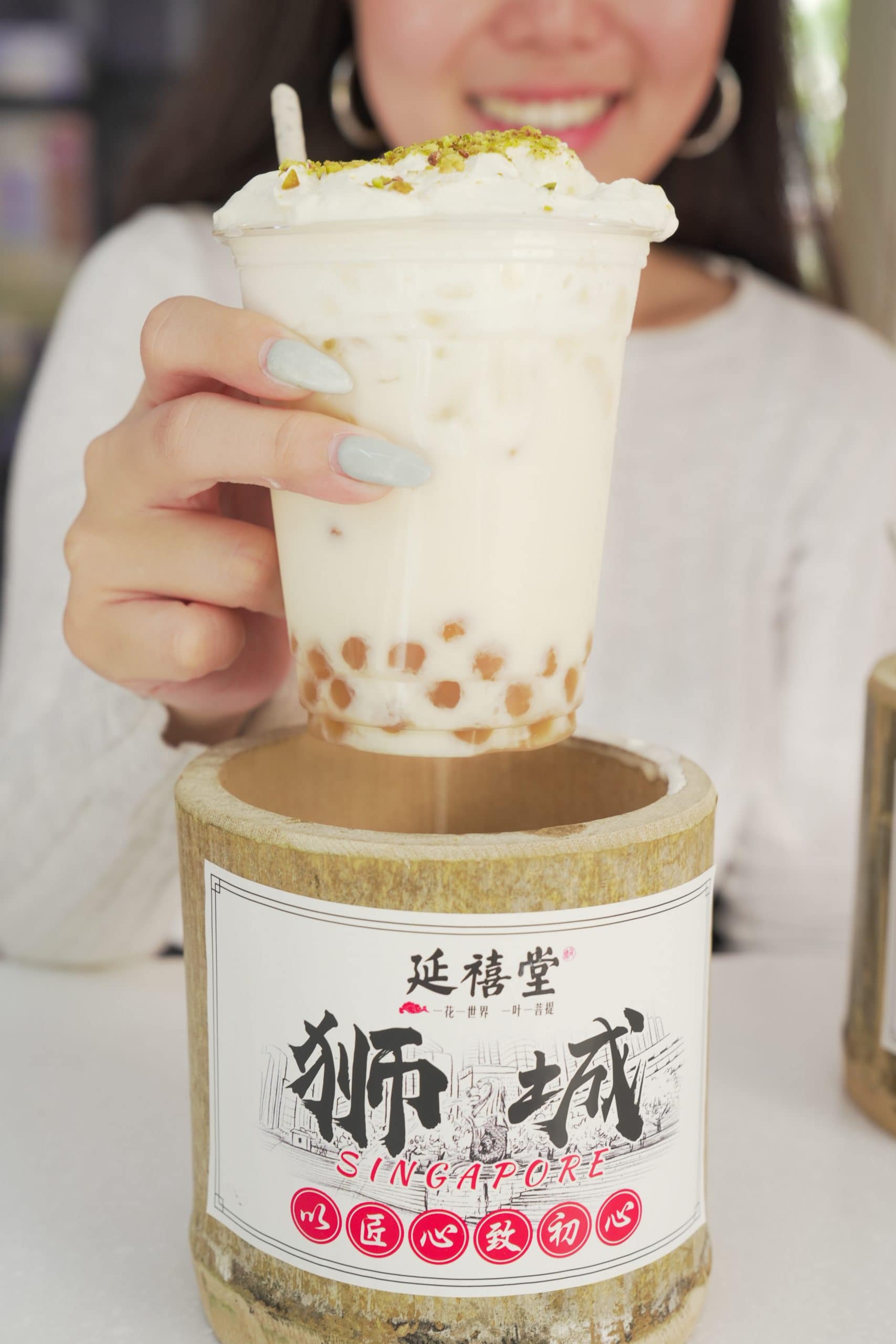 We’ve seen bamboo ice cream and coffee being served in JB, but having bubble tea served in a bamboo cup? Now that’s a first (in Singapore at least).