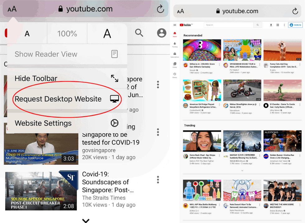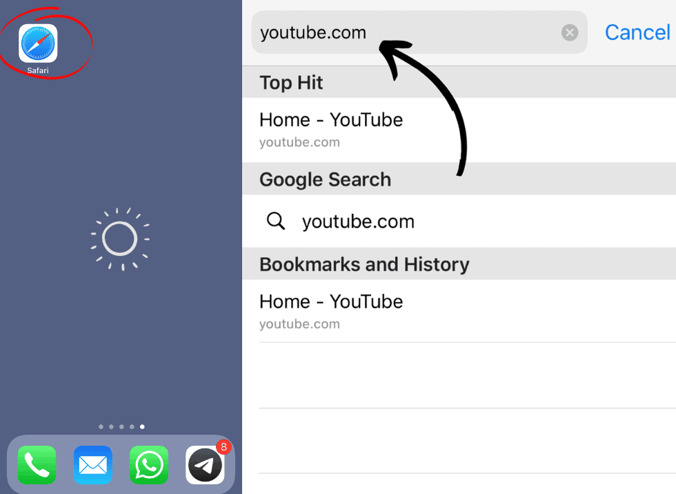 1. Open YouTube Page in Safari