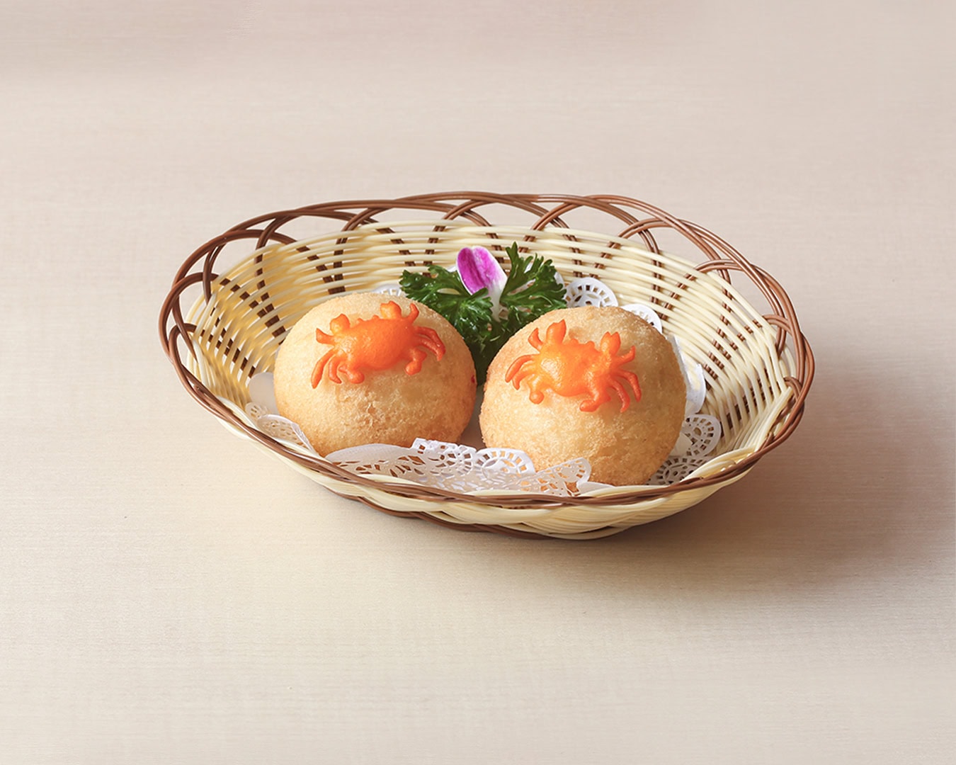 This fried bun is stuffed with real crab meat in chilli crab sauce and decorated with an adorable hand-made crab-shaped crust.