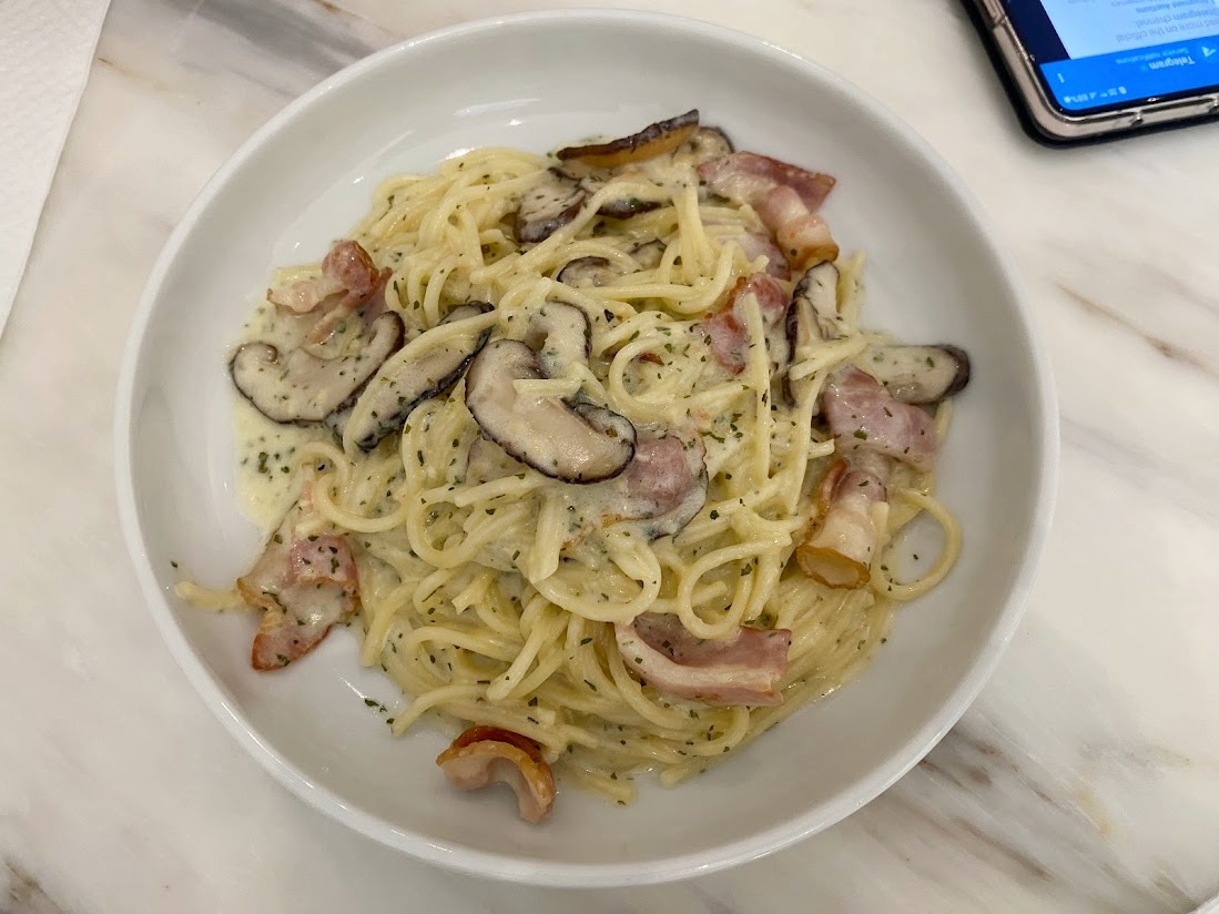 You can also find Mushroom or Bacon Aglio Olio, Chilli Crab Pasta (+S$8), and Carbonara, coupled with sides like Mentaiko Mayo Prawn (+S$2), Fried Chicken Wings, Spam Fries, Chicken Karaage, and Soup of the Day. It’ll (quite literally) be a mouthful!